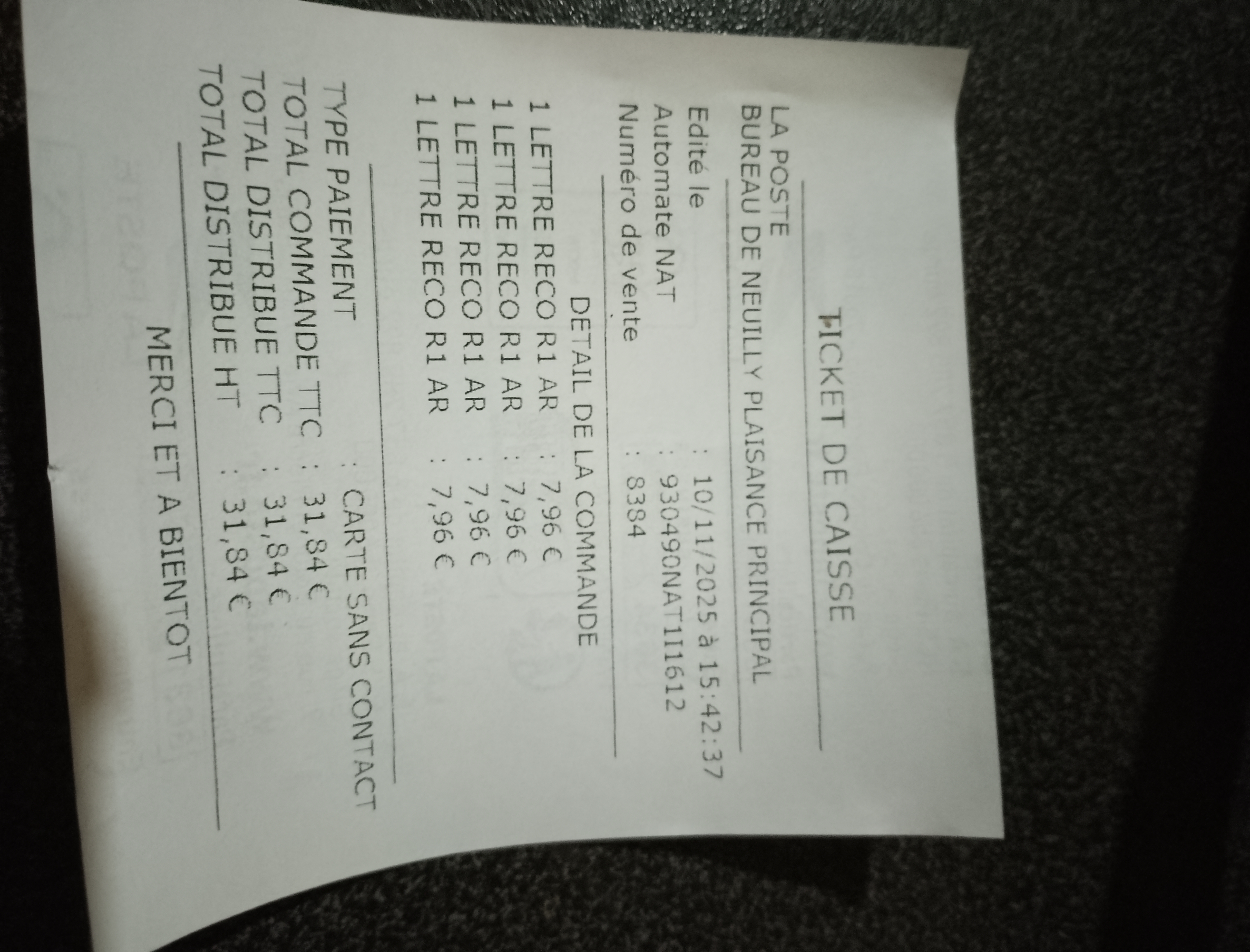 | 20251110 | recommande | dépense | Visualiser | -31.84 € |